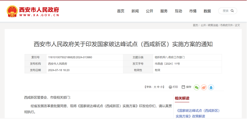 7月19日,西安市人民政府面向西咸新區(qū)管委會(huì),市級(jí)相關(guān)部門(mén)印發(fā)《國(guó)家碳達(dá)峰試點(diǎn)(西咸新區(qū))實(shí)施方案》,聚焦綠色低碳發(fā)展的能源和產(chǎn)業(yè)轉(zhuǎn)型瓶頸制約,加快提升能源清潔化利用效率、基礎(chǔ)設(shè)施綠色低碳化水平和減污降碳協(xié)同能力,全面推動(dòng)產(chǎn)業(yè)高質(zhì)量發(fā)展和資源循環(huán)利用。