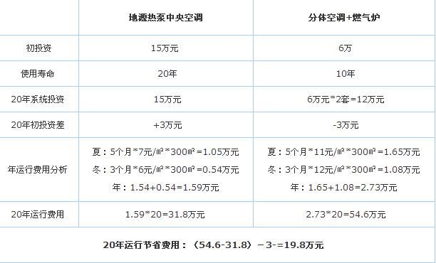 3 、初投資及運行費用的綜合比較。由于地源熱泵中央空調機組的工況優(yōu)于傳統(tǒng)的空調的工況,所以它能夠更輕松的達到室內的溫度要求和效果,從而能效比更高。因此,地源熱泵空調更經(jīng)濟節(jié)能,減少家庭開支。