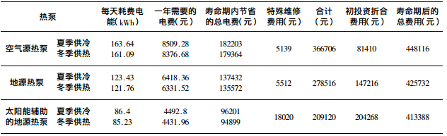 調查表明,在整個壽命期之內,一般使用者都會更換一次壓縮機,按照研究的數據,為了提高整個系統(tǒng)的效率,壓縮機大多在壽命期的第14年更換,使用更高效昂貴的壓縮機。地大熱能地源熱泵事業(yè)部專家認為考慮到本文研究的熱泵系統(tǒng)冷量接近,認為更換壓縮機對于費用比較不產生影響。